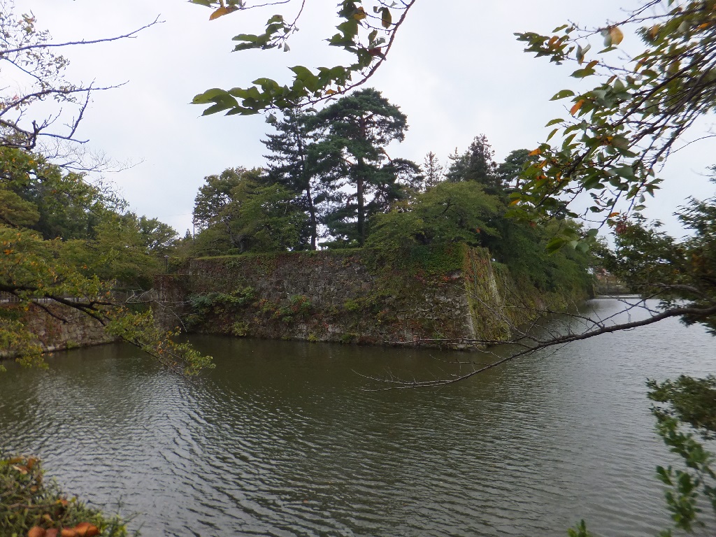 お城の堀、観光地らしくお城の入り口の周りにはお土産物屋とかがあった。いつも思うんだが、石垣には結構でかい石が使われているけれど、クレーンとかの重機がない昔の人はどうやって石を運んだり積んだりしたんだろうか。