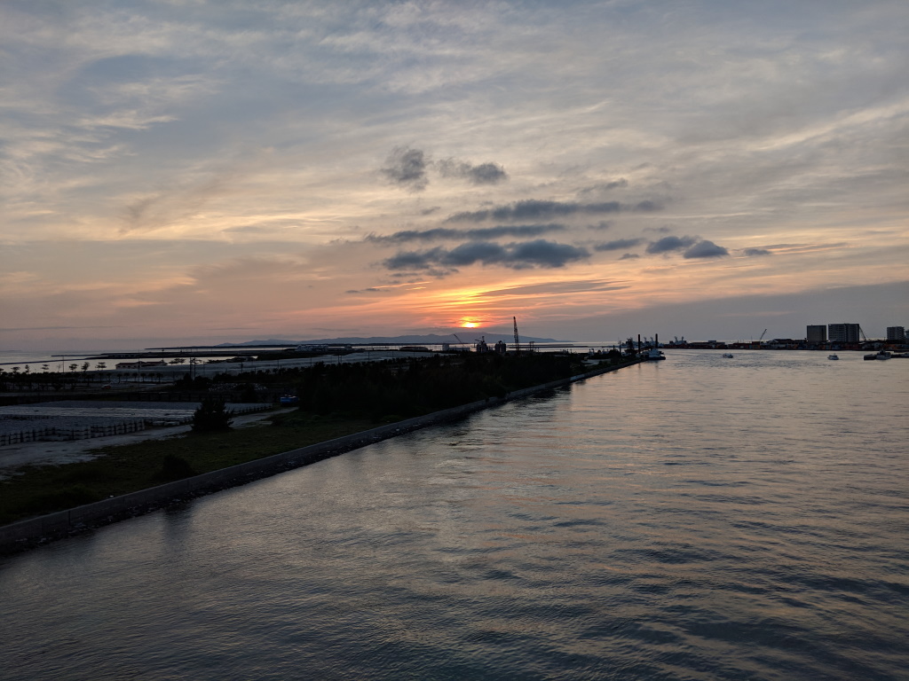 石垣島の市街地に戻ってきたので、港のほうに夕日をみに、すっかり暗くなってしまった。あとは、お酒を飲みながら食事をして眠るだけ。